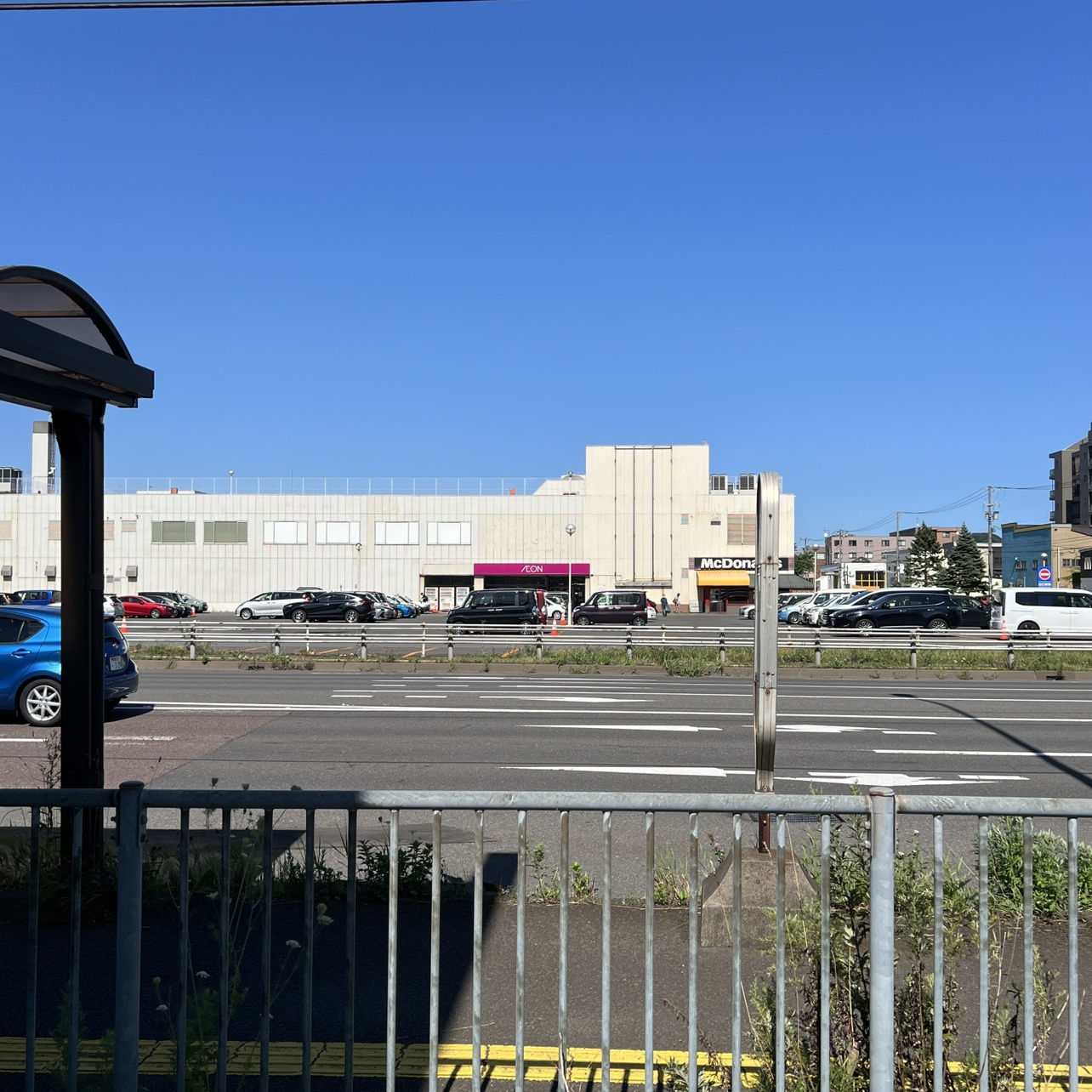 道路挟んで迎えにイオン、横にはニトリ、徒歩圏内にトライアルやびっくりドンキーなど