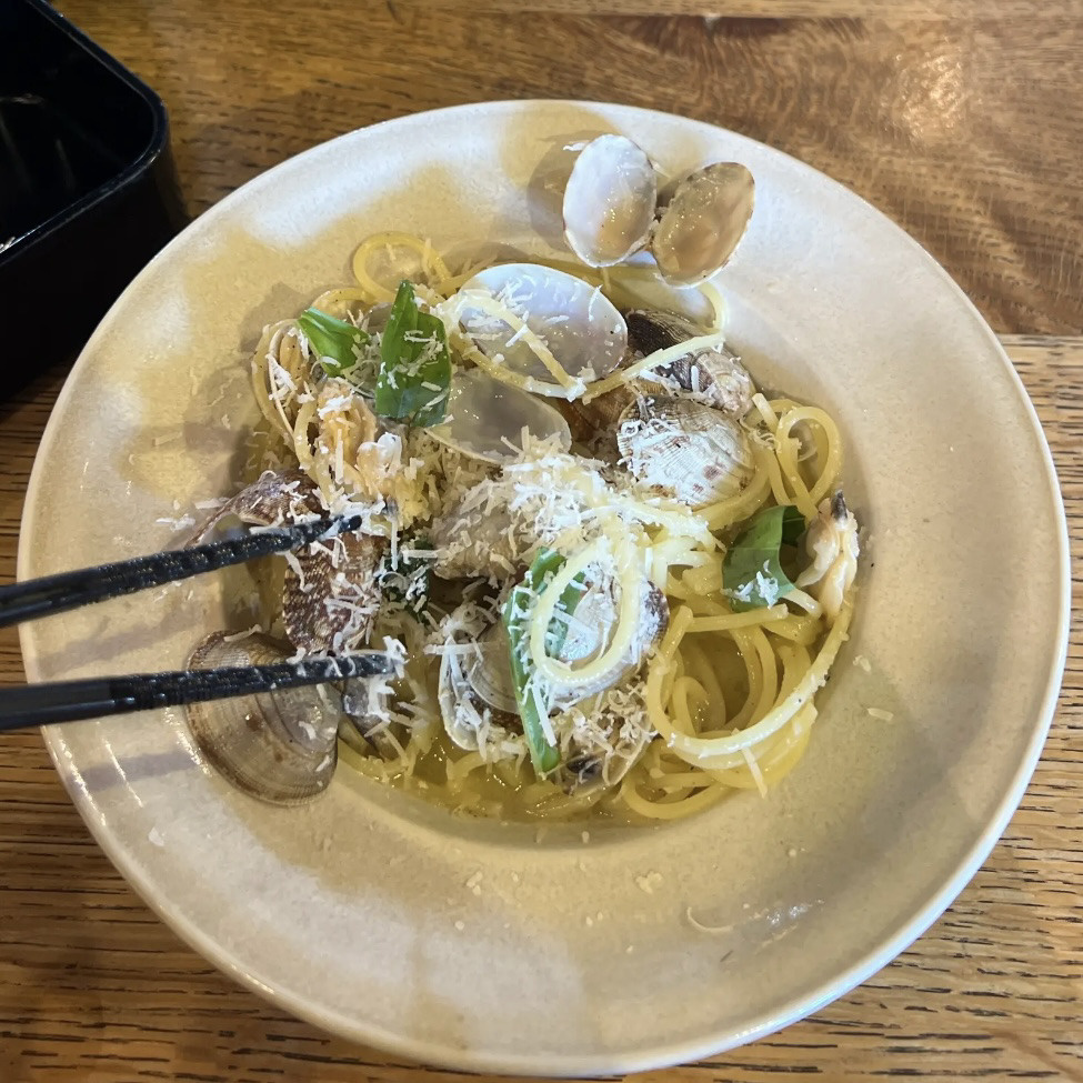私は、毎回アサリのバジルパスタを食べます(^▽^)/